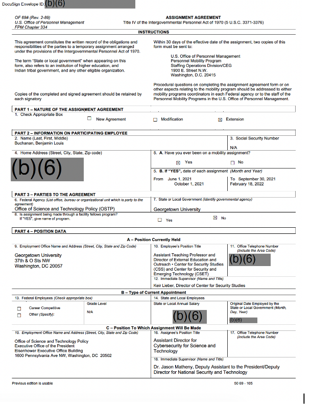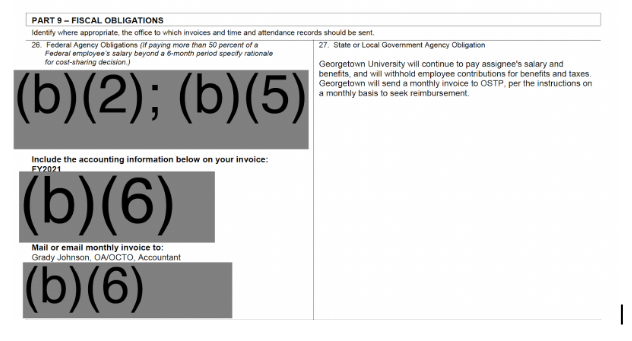In this case, Georgetown University, where Buchanan was serving as director of CSET’s CyberAI project, continued to pay his salary and benefits, which were reimbursed by the federal government at the end of each month, according to documents obtained by the Washington Examiner.