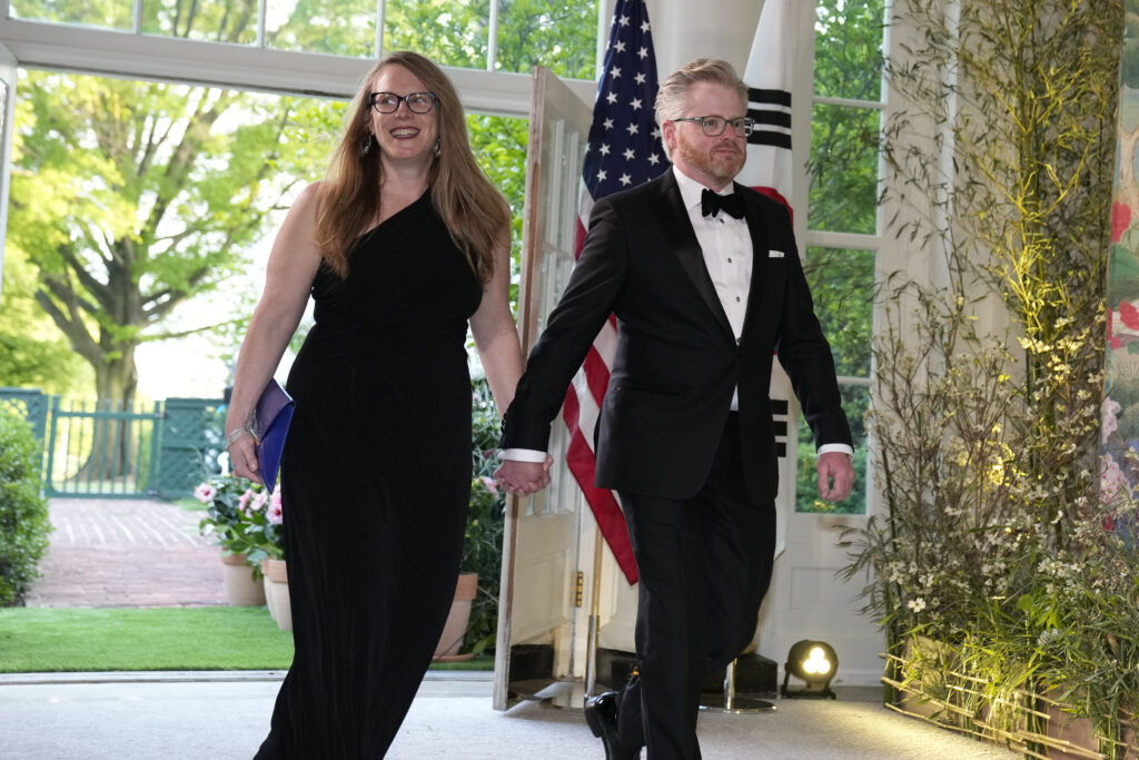 White House deputy chief of staff Jen O’Malley Dillon and Patrick Dillon arrive for the State Dinner with President Joe Biden and the South Korea’s President Yoon Suk Yeol at the White House, Wednesday, April 26, 2023, in Washington. (AP Photo/Alex Brandon)