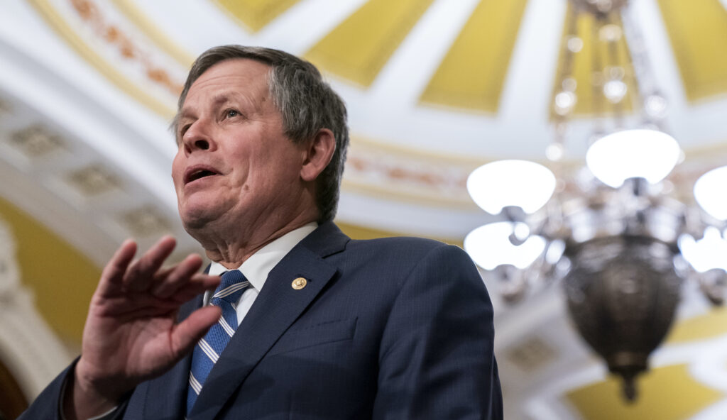 Sen. Steve Daines (R-MT) speaks to media after a Senate Republican policy luncheon, Tuesday, Dec. 5, 2023, on Capitol Hill in Washington. (AP Photo/Stephanie Scarbrough)