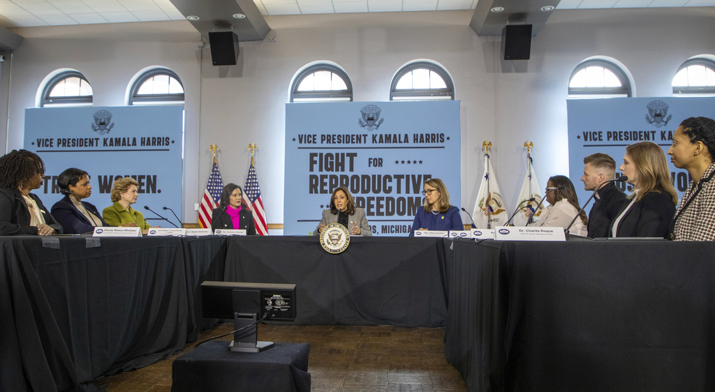 Grand Rapids is the fourth stop of Harris’s “Fight for Reproductive Freedoms” tour, which started on what would have been the 51st anniversary of Roe v. Wade last month in Wisconsin, another battleground state. In Michigan, the 11th state Harris has traveled to this year, the vice president convened a roundtable conversation with medical providers, patients, and reproductive healthcare advocates, in addition to state and local leaders, including Sen. Debbie Stabenow (D-MI) and Rep. Hillary Scholten (D-MI), as well as Centers for Medicare and Medicaid Services Administrator Chiquita Brooks-LaSure.