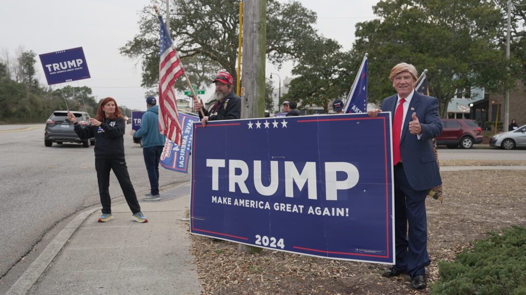 “It’s a big part of it. It’s almost done. I think Super Tuesday would be the final nail,” Sandifer said while dressed as a Trump impersonator who wore the classic blonde toupee while demonstrating across the street from a Haley rally in Myrtle Beach, South Carolina.