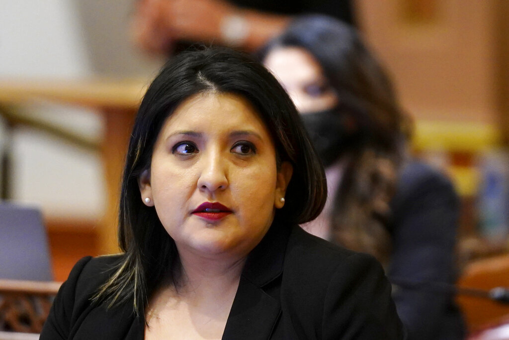 Democratic California state Sen. Melissa Hurtado listens to the debate on a bill before the Senate at the Capitol in Sacramento, California, on March 7, 2022. (AP Photo/Rich Pedroncelli)