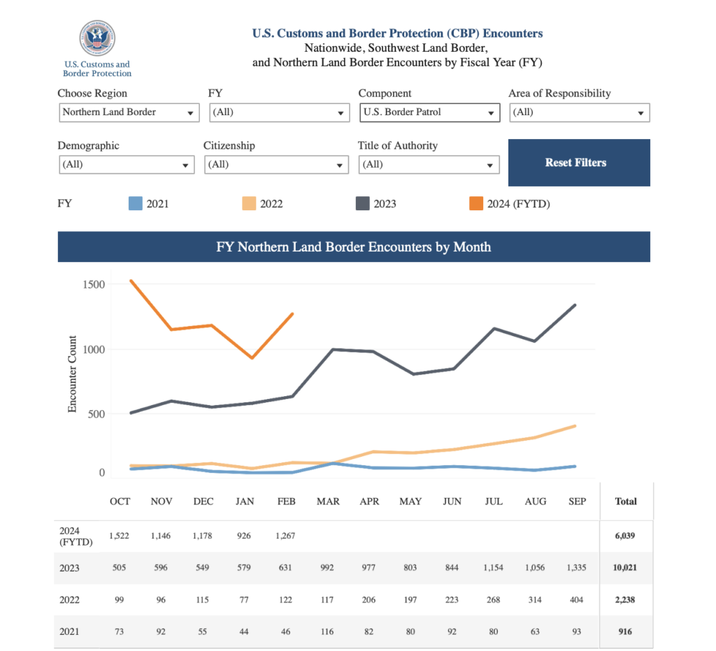 Drug interdictions and illegal immigration on the northern border still pale in comparison to the U.S.-Mexico border, where, since the start of 2024, Border Patrol agents have arrested 894,000 illegal immigrants and CBP’s Office of Field Operations officers have thwarted the smuggling of 8,000 pounds of fentanyl through ports of entry.