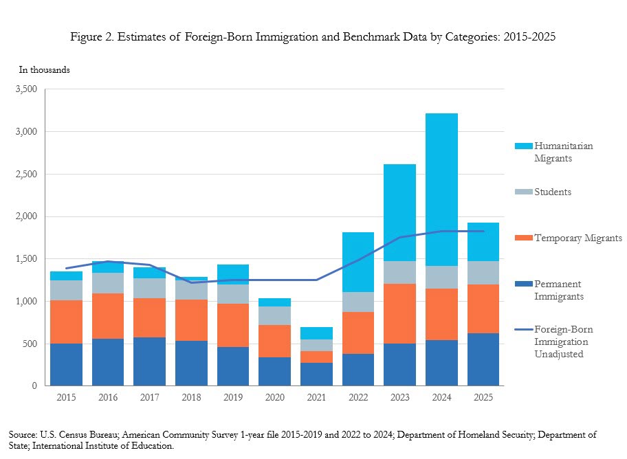 The headline story is the sharp rise and sharp fall in immigration. The notion that immigration exploded sharply during the Biden administration and contracted sharply during the second Trump administration is not political propaganda.Â
